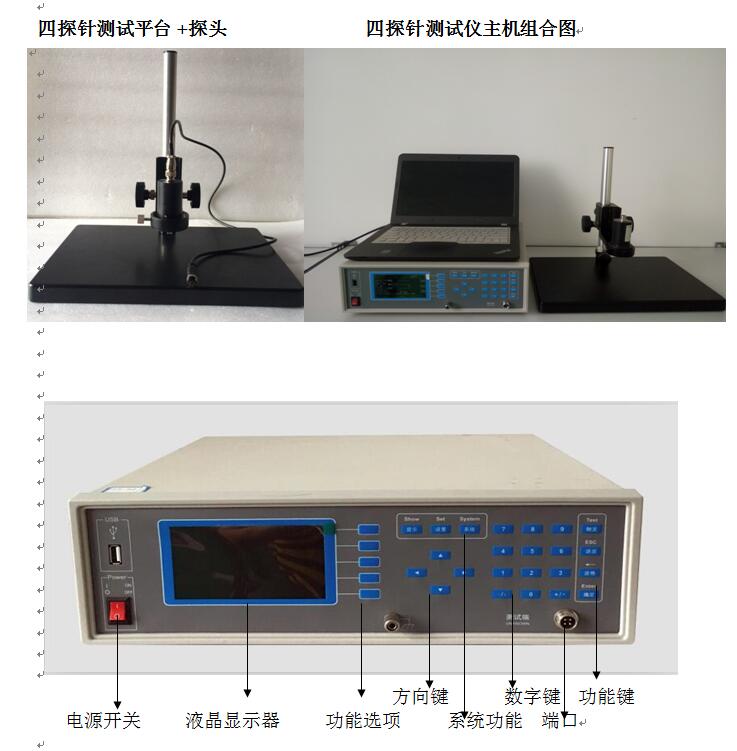 選購1.pc軟件; 選購2.方形探頭; 選購3.直線形探頭; 選購4.測試平;5.標(biāo)準(zhǔn)電阻 1.pc software; 2. square probe; 3. linear probe; 4. test platform |
