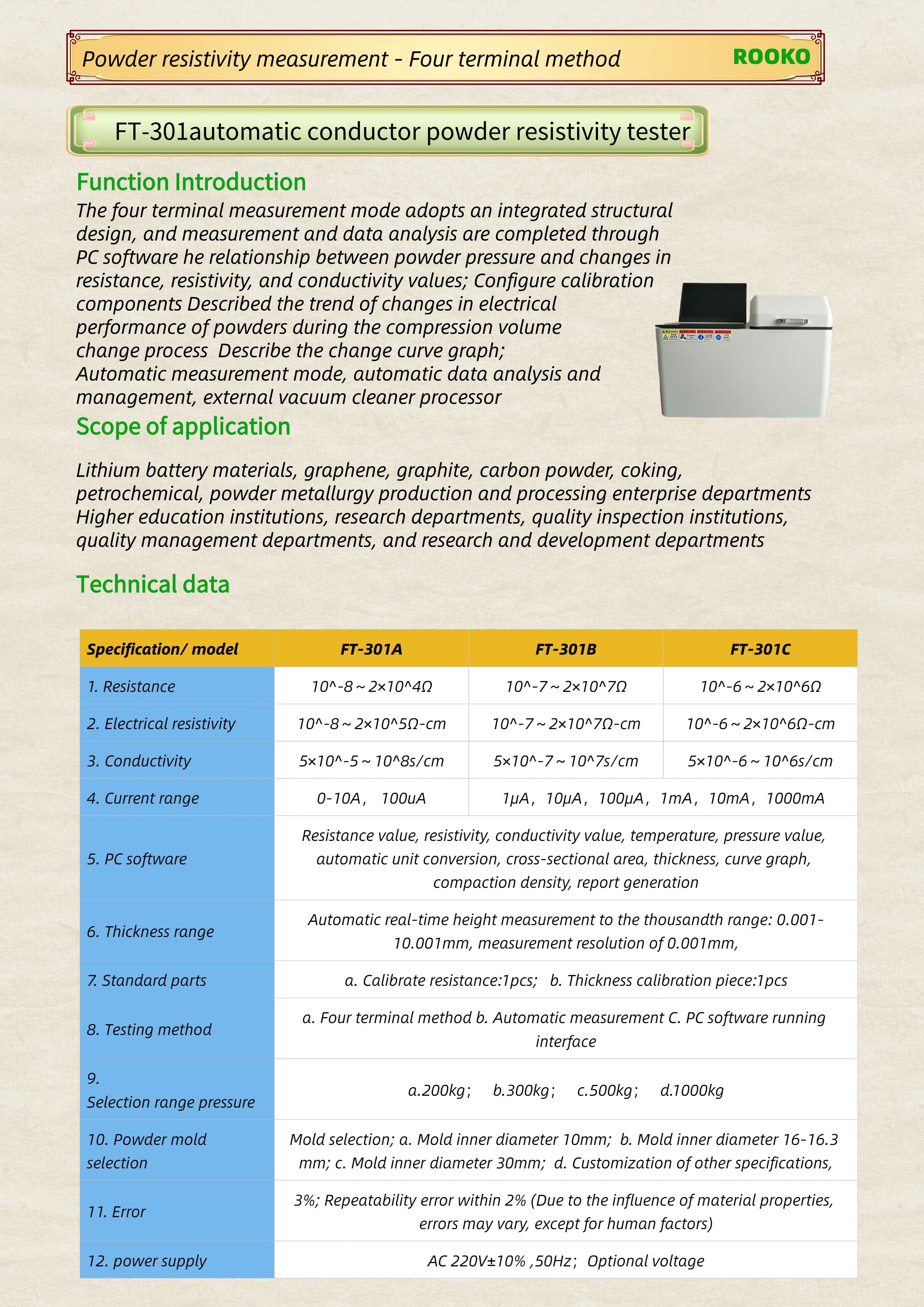 ROOKO瑞柯微專注于粉末/粉體/顆粒流動性測試儀,振實/松裝/堆積密度測定儀,休止角測定儀,安息角測定儀,粉末電阻率測試儀,粉體綜合特性測試儀,四探針/方阻/電阻率測試儀,材料體積/表面電阻率測試儀廠家提供技術資訊和解答